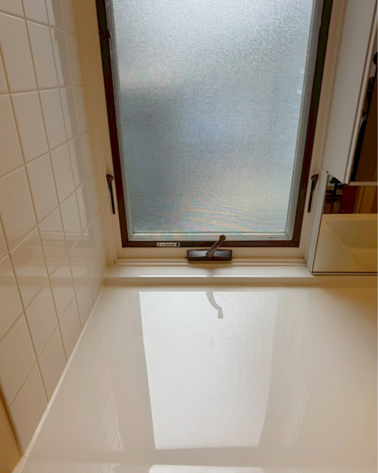 既存の美しい白タイル壁と、明るい採光を取りこむ縦長の横すべり窓を活かしながら、白亜なルミシスがぴったりと調和しました。